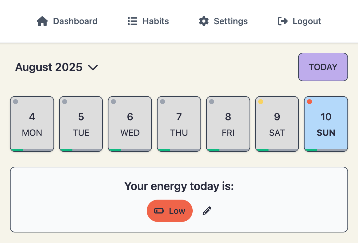 If you're neurodivergent, burnt out, or just tired of habit apps that assume you're at 100% every day, try out my app. I'd love to hear your feedback on it too!
